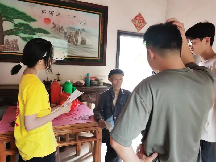 振兴乡村展希望,发展之路领风采。宣城市宣州区狸桥镇是一座自然资源和旅游资源丰富的历史古镇,实践服务团在当地负责人的带领下,了解了该镇特色产业的项目介绍与发展以及美“狸”庭院创建活动的开展情况,探索乡村文旅事业对乡村振兴的作用。团队成员还深入居民家中,向老年居民科普健康饮食、反诈骗等相关知识,融入文艺表演、互动提问等,让居民在娱乐中提高健康意识、增强防范诈骗意识。